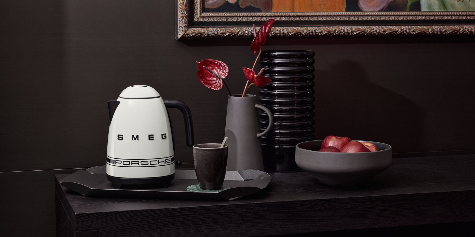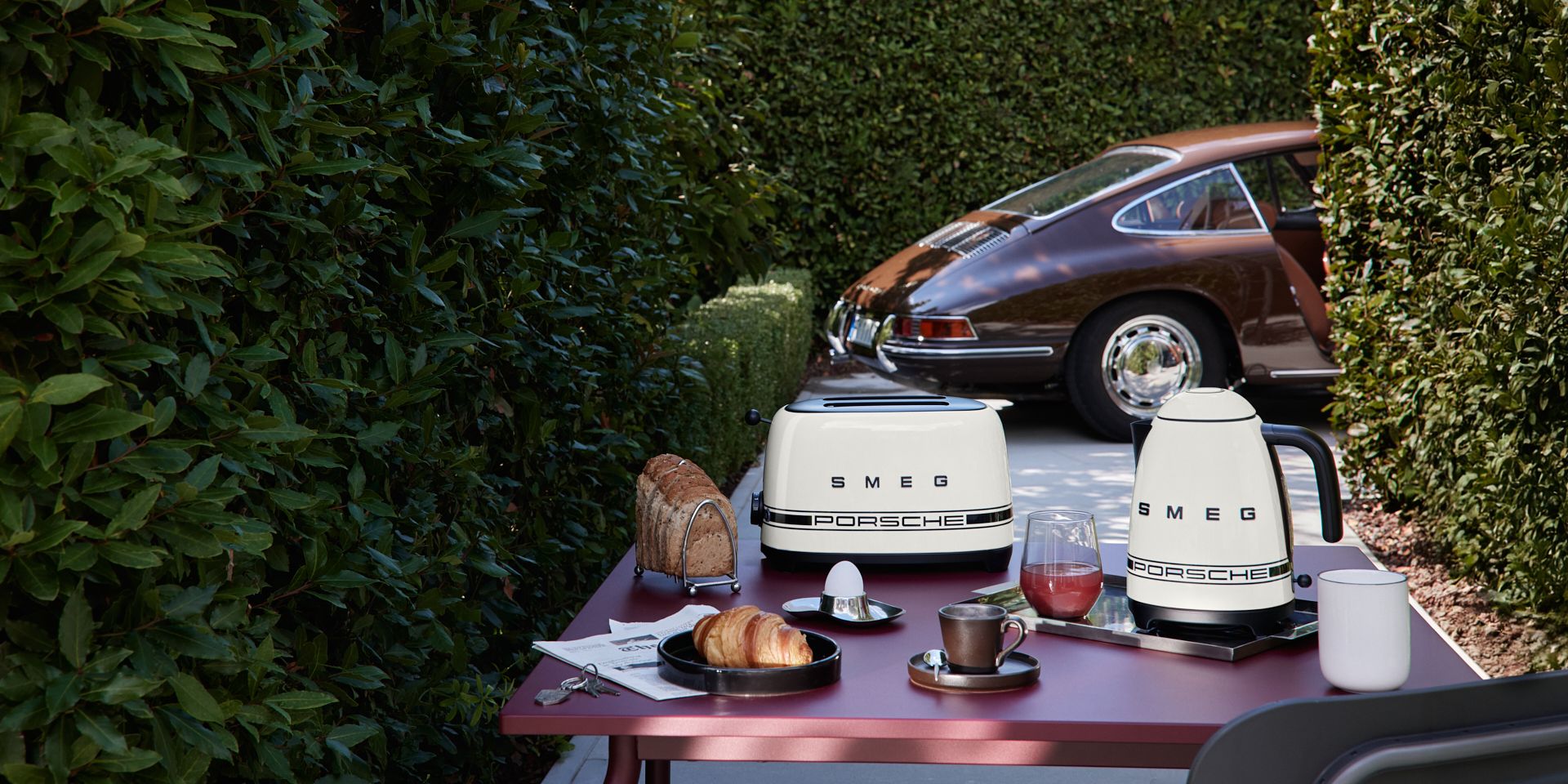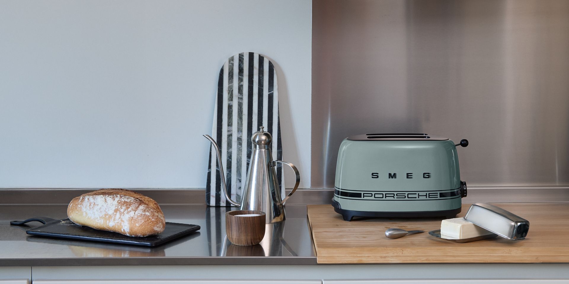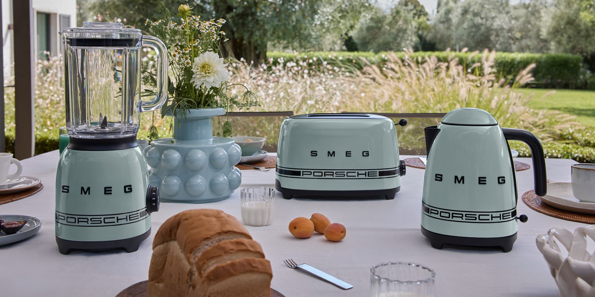 Depth with sophistication. The Porsche x SMEG Shade Green fridge, toaster, kettle and blender brings a layered, contemporary tone that shifts subtly with the light and plays with matte‑black finishing. Products that couple refined aesthetics with confident capability to serve your everyday without compromise.