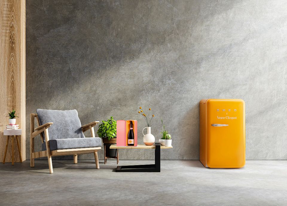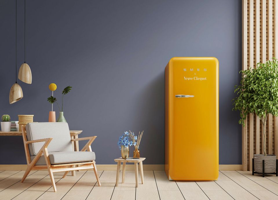 Smeg lanceert een nieuwe lijn van kleurrijke koelkasten in samenwerking met Veuve Clicquot, om het 250 jarig bestaan van het Frans champagne huis te vieren.