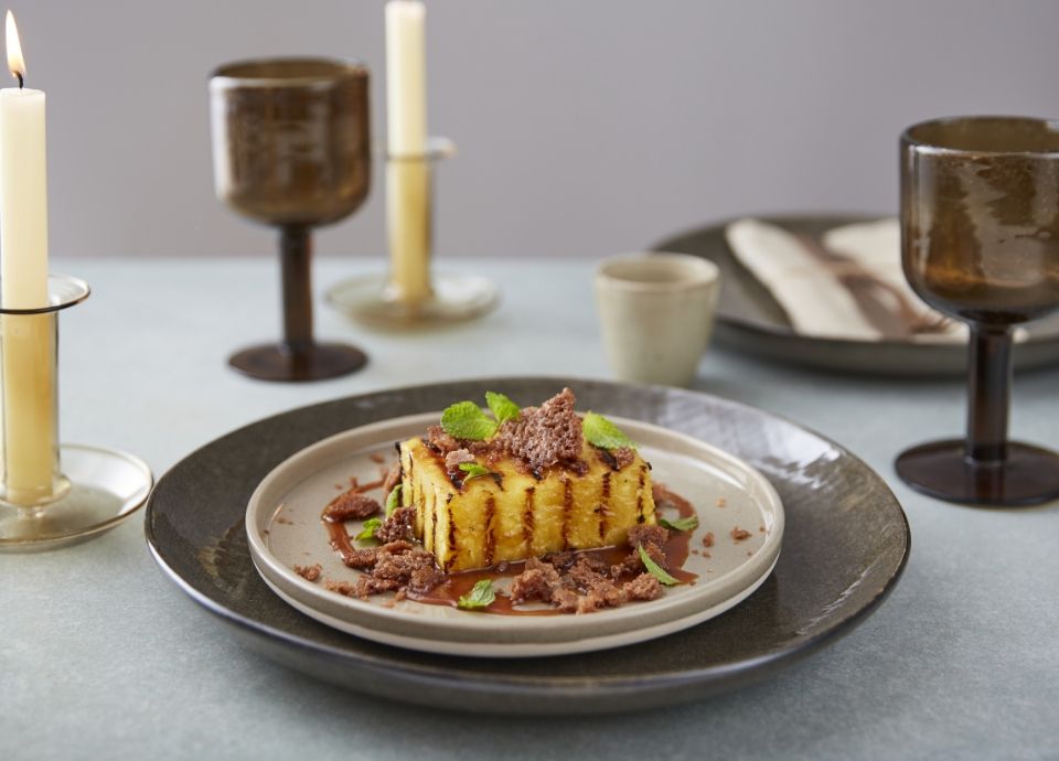 Den Robiola-Käse mit der Sahne aufschlagen, bis eine leichte, fluffige Mousse entsteht.