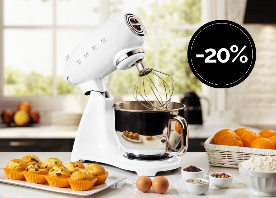 Køkkenmaskine i 50’er-design med kraftfuld motor, 10 hastigheder, soft start-funktion samt planetarisk rotation for jævn og perfekt blanding.