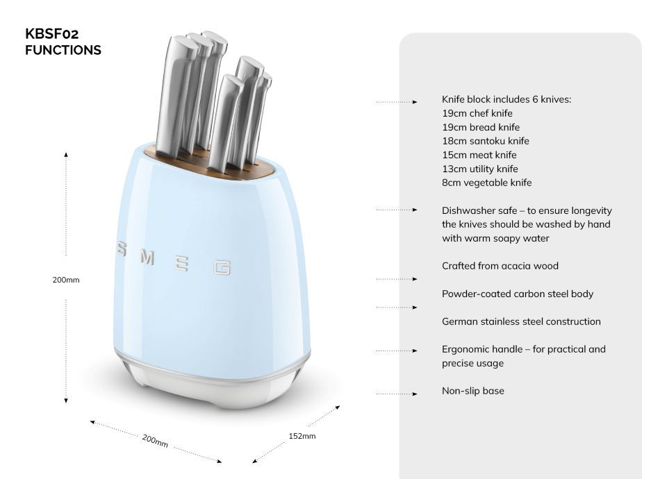 Every detail of the Smeg knife block has been designed to offer maximum performance and style, making it an indispensable ally for those who want to cook safely, precisely, and elegantly.