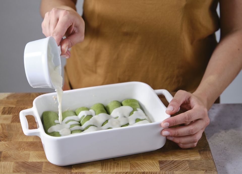 Arrotolare delicatamente la pasta su se stessa, formando dei cannelloni ben chiusi.