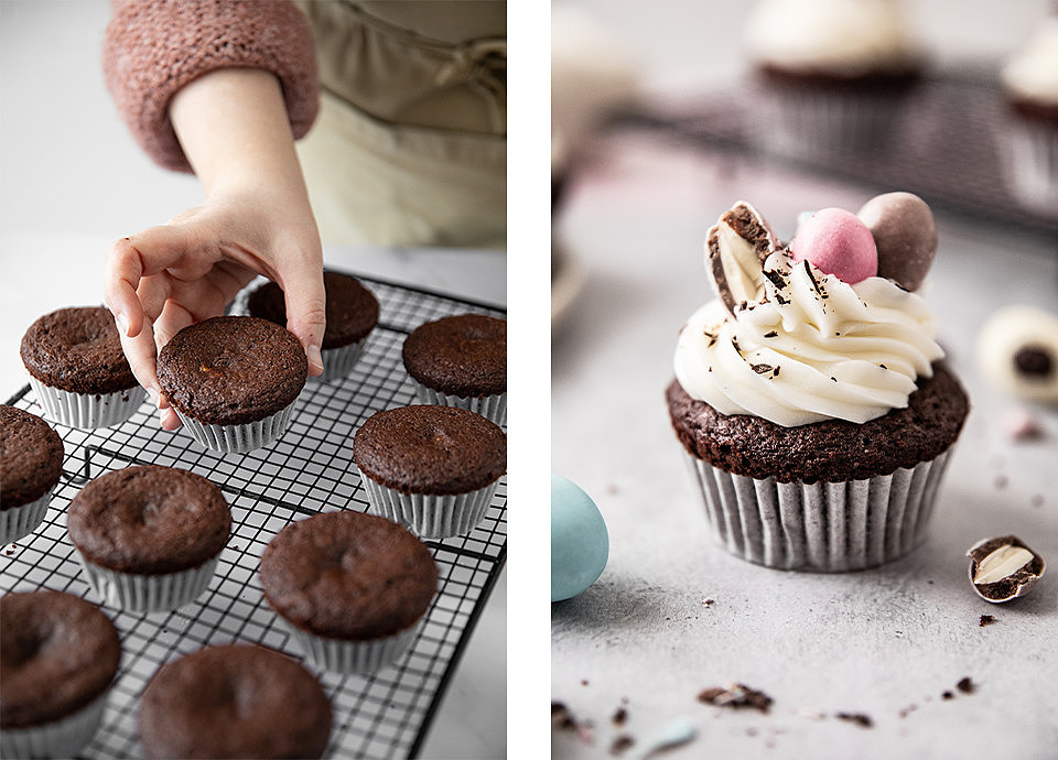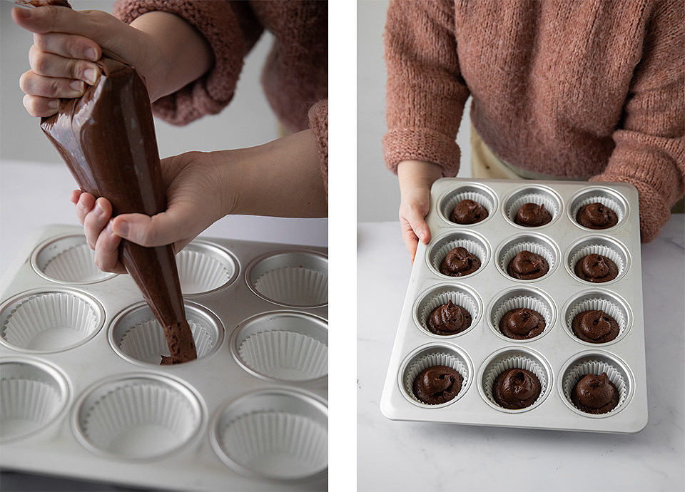 Iniziare preparando le basi per i cupcake: setacciare la farina, il sale e il cacao in una ciotola e mettere da parte.